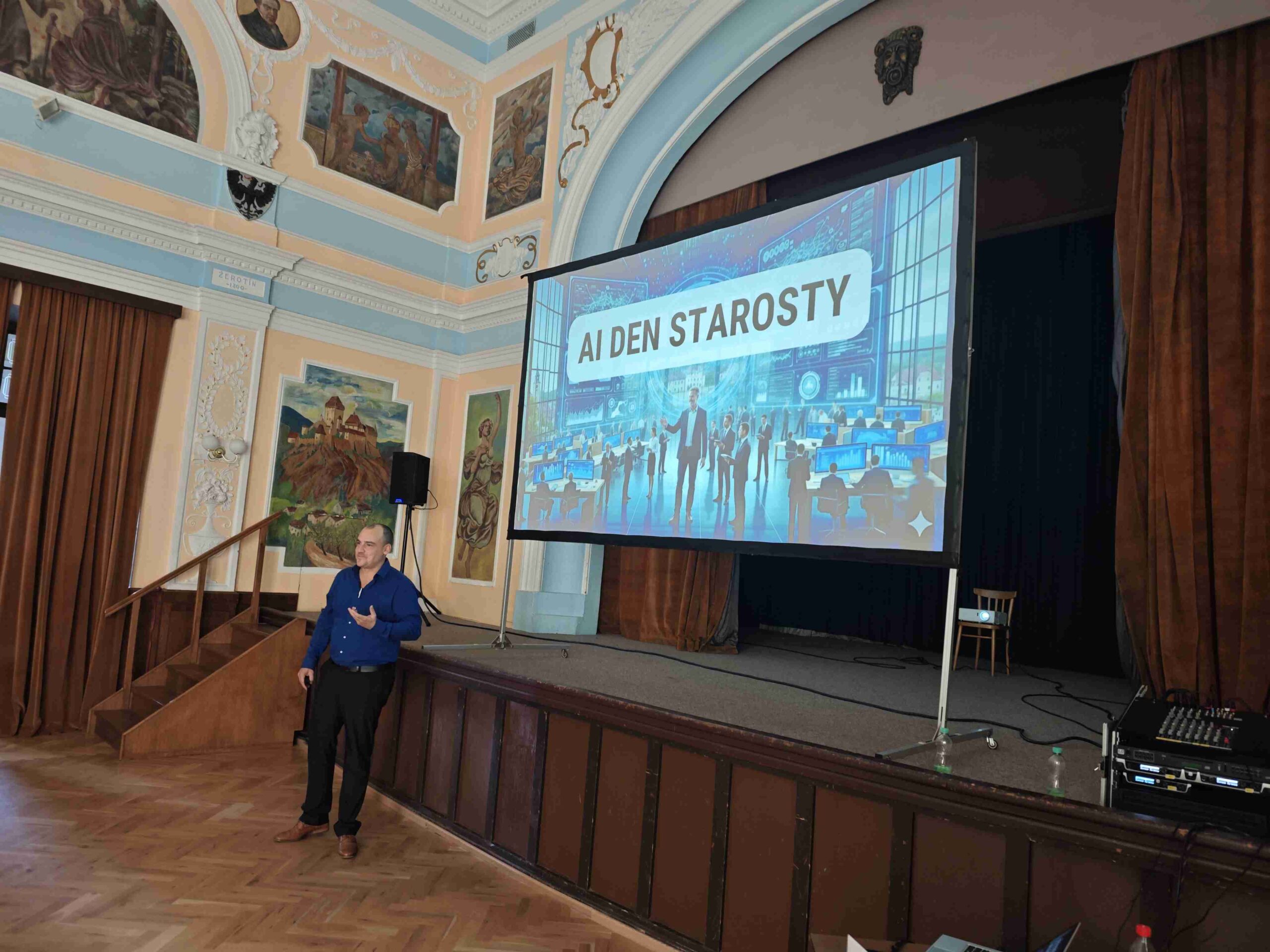 Ve čtvrtek 11. září uspořádal sekretariát Regionální stálé konference v nádherném divadelním sále radnice v Hořovicích cyklus přednášek na téma Možnosti využití nástrojů umělé inteligence (AI) pro obce a o podpoře lokálních ekonomik.